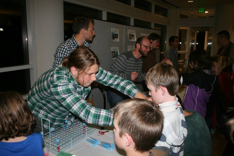 We were invited to participate in Utah State University’s Science Unwrapped series this April. After listening to a presentation from Paleontologist Mary Schweitzer, kids of all ages visited our booth to view an assortment of arachnids (provided by Zach Valois) and extract DNA from their cheek cells. They created necklaces from their DNA, which they took home with them. We all had a great time.